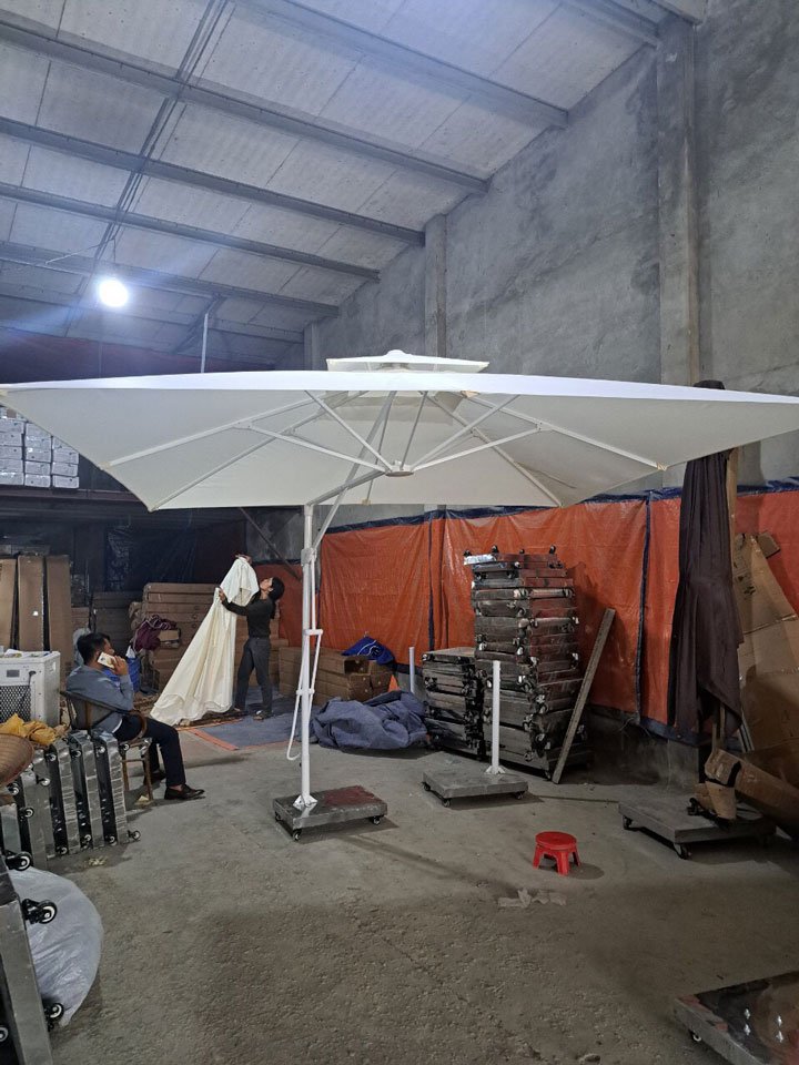 Ô Dù lệch tâm vuông có tay quay điều chỉnh độ mở rộng của ô